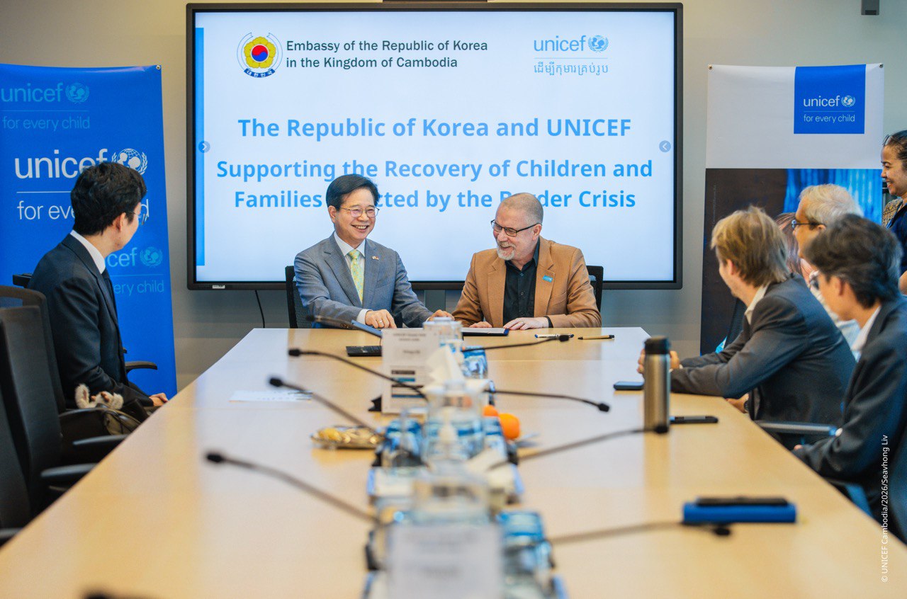 김창룡 대사는 2.10.(화) 프놈펜에 위치한 UNICEF 캄보디아 사무소에서 Will Parks UNICEF 캄보디아 사무소장과 함께 대한민국의 50만불 규모 인도적 지원 관련 서명식을 가졌습니다.
